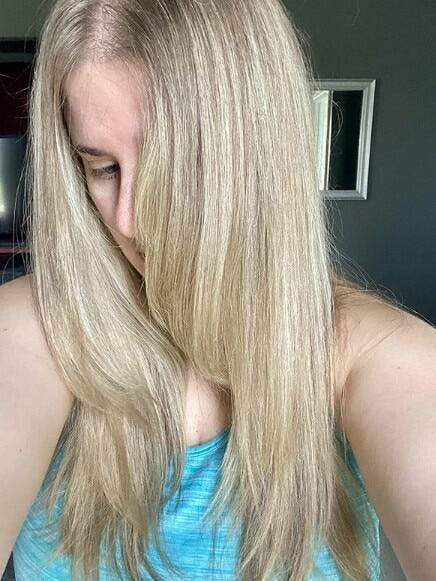 • Lave o cabelo com o shampoo e o condicionador regulares e enxágue bem.